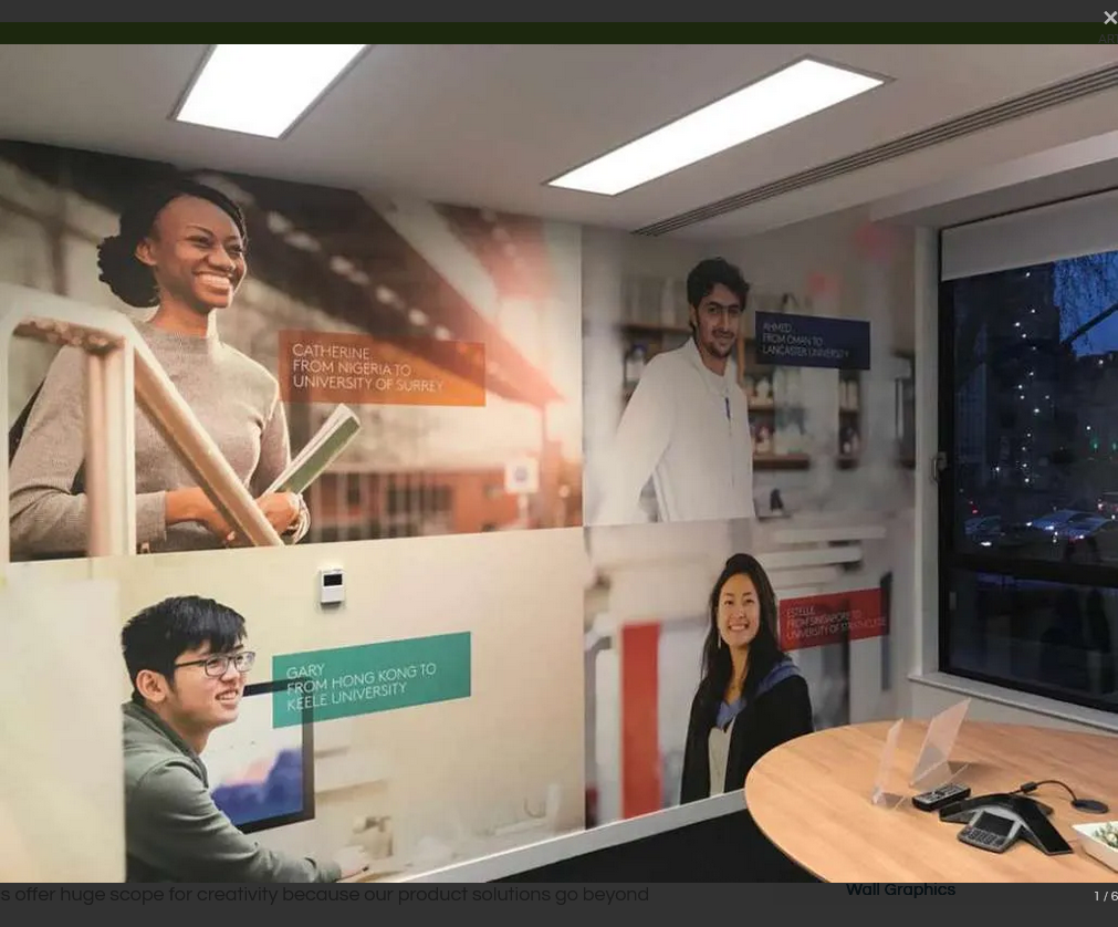 Transform your workplace with our office wall graphics and window vinyls. Use inspirational imagery to motivate employees or present your brand imagery or infographics using our wall mounted fabric frames and LED fabric frames − both a cost effective way to display and regularly update your office wall art.