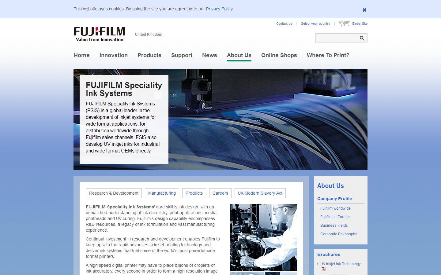 FUJIFILM Speciality Ink Systems' core skill is ink design, with an unmatched understanding of ink chemistry, print applications, media, printheads and UV curing. Fujifilm’s design capability encompasses R&D resources, a legacy of ink formulation and vast manufacturing experience.