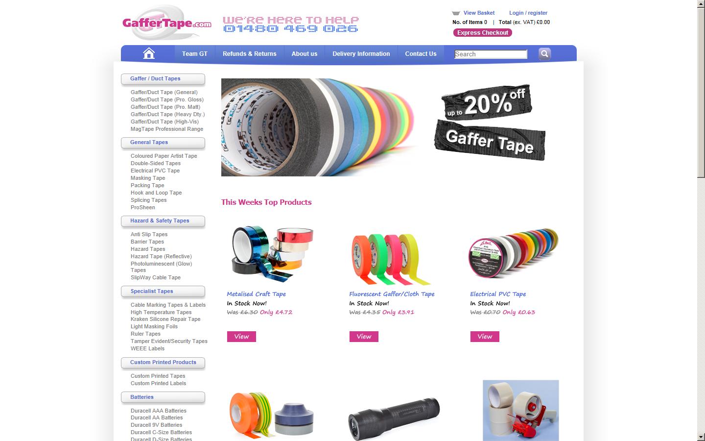 GafferTape.Com has been in business for over 25 years and are specialists in gaffer, duct and cloth tape.Products range from masking tapes to hazard and safety tape.