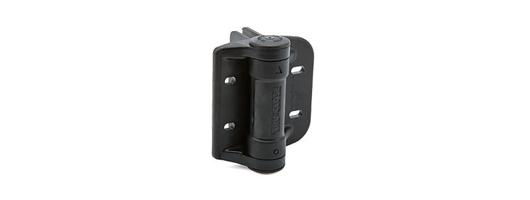 A compact, self - closing, double bearing hinge with an 180° opening angle that easily closes gates up to 75 kg. Closing speed and final latching can be adjusted after installation.