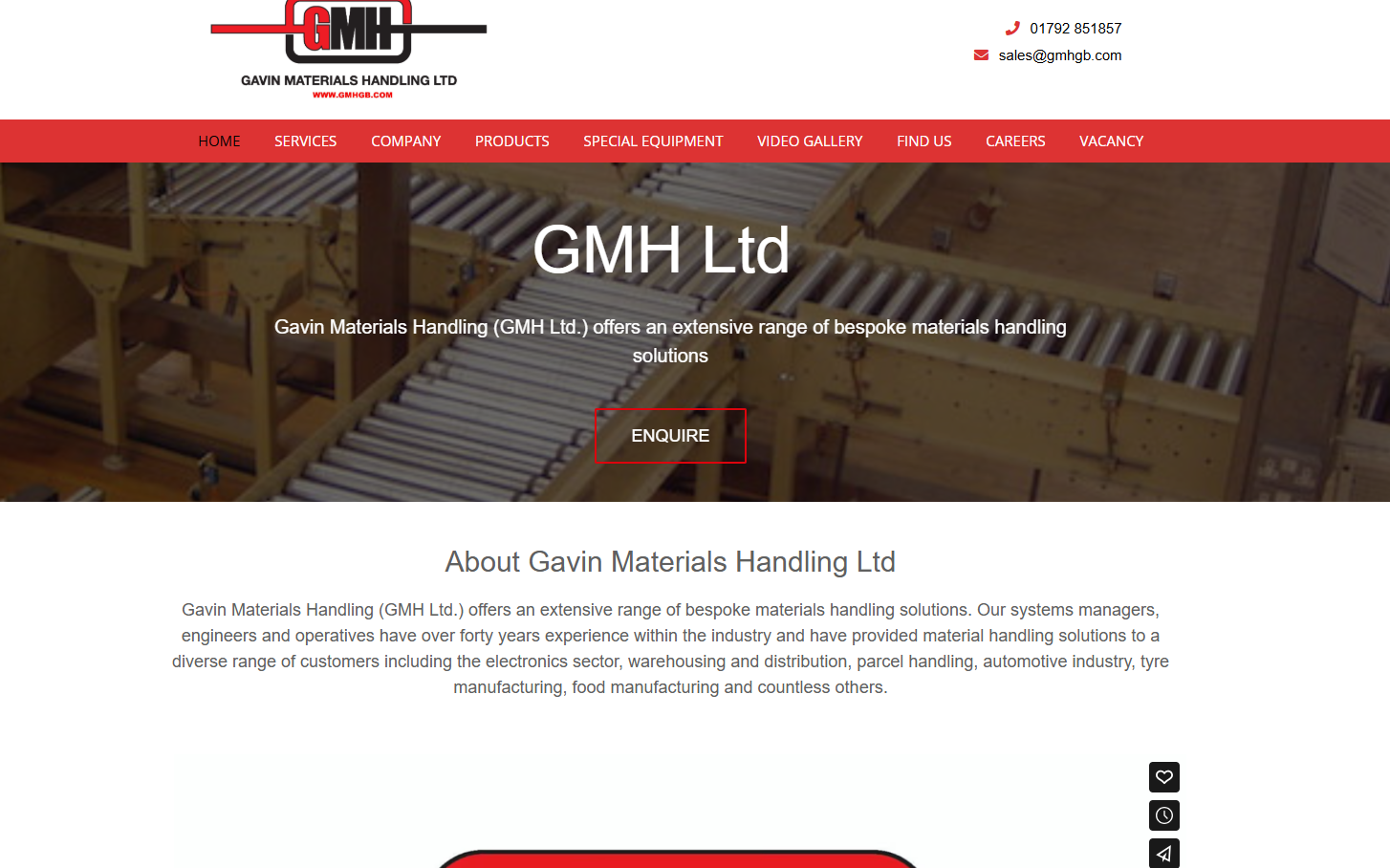 Gavin Materials Handling (GMH Ltd.) offers an extensive range of bespoke materials handling solutions. Our systems managers, engineers and operatives have over forty years experience within the industry and have provided material handling solutions to a diverse range of customers including the electronics sector, warehousing and distribution, parcel handling, automotive industry, tyre manufacturing, food manufacturing and countless others.