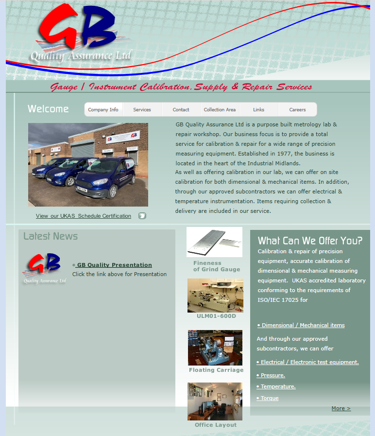 GB Quality Assurance Ltd is a purpose built metrology lab & repair workshop. Our business focus is to provide a total service for calibration & repair for a wide range of precision measuring equipment. Established in 1977, the business is located in the heart of the Industrial Midlands. As well as offering calibration in our lab, we can offer on site calibration for both dimensional & mechanical items. In addition, through our approved subcontractors we can offer electrical & temperature instrumentation. Items requiring collection & delivery are included in our service.