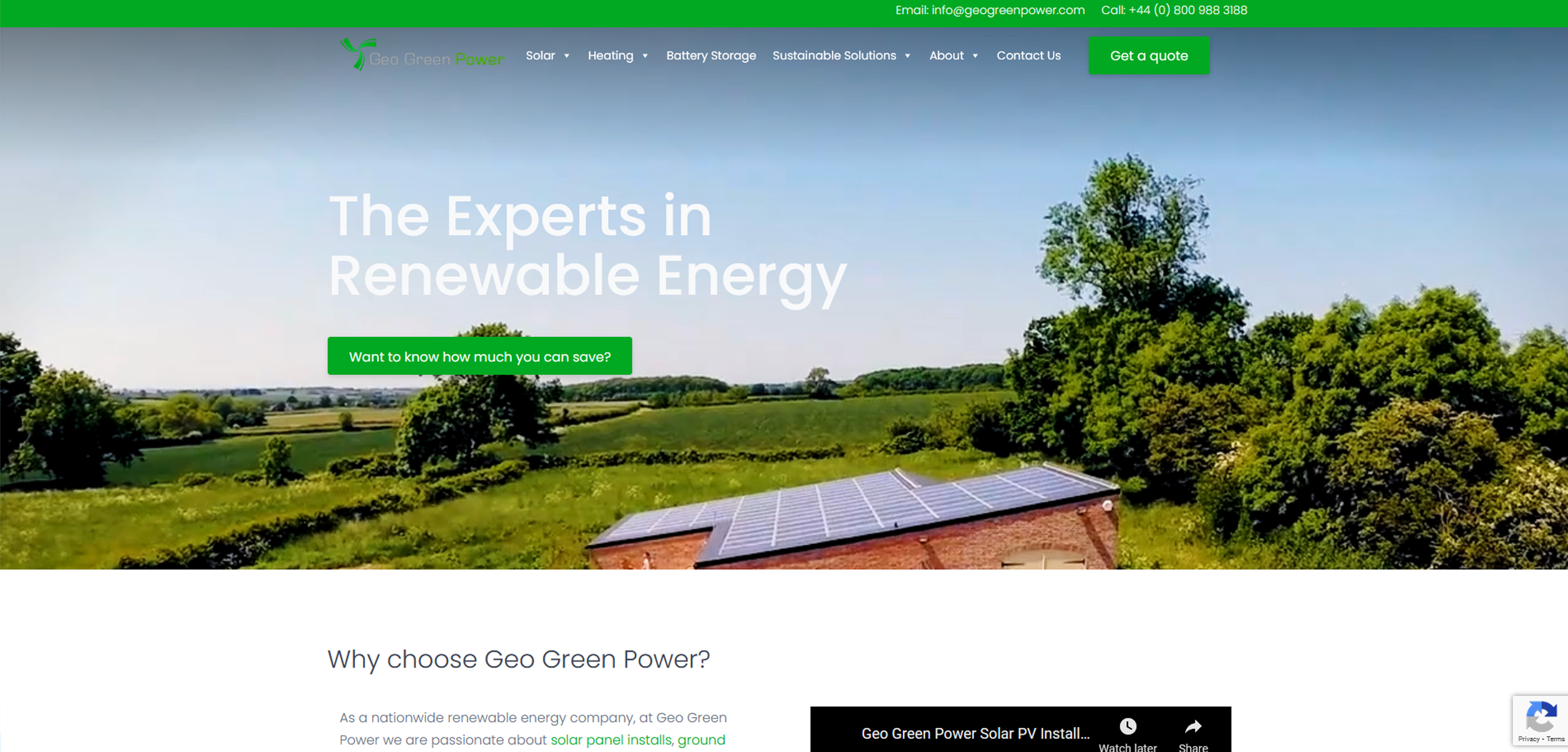 Geo Green Power work with customers all over the UK to deliver energy-efficient heating and energy solutions for both commercial and domestic properties. From solar PV systems and battery storage to heat pumps and biomass boilers, they bring over a decade’s worth of expertise to every installation project. Call the team today to find out more about their services.