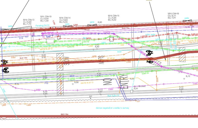 Our findings can be easily presented in CAD format and overlaid onto a topographical drawing, or can simply be marked on the ground if required. Information such as pipe sizes, directional flow and materials can also be included in any CAD drawing when we undertake our underground surveying.