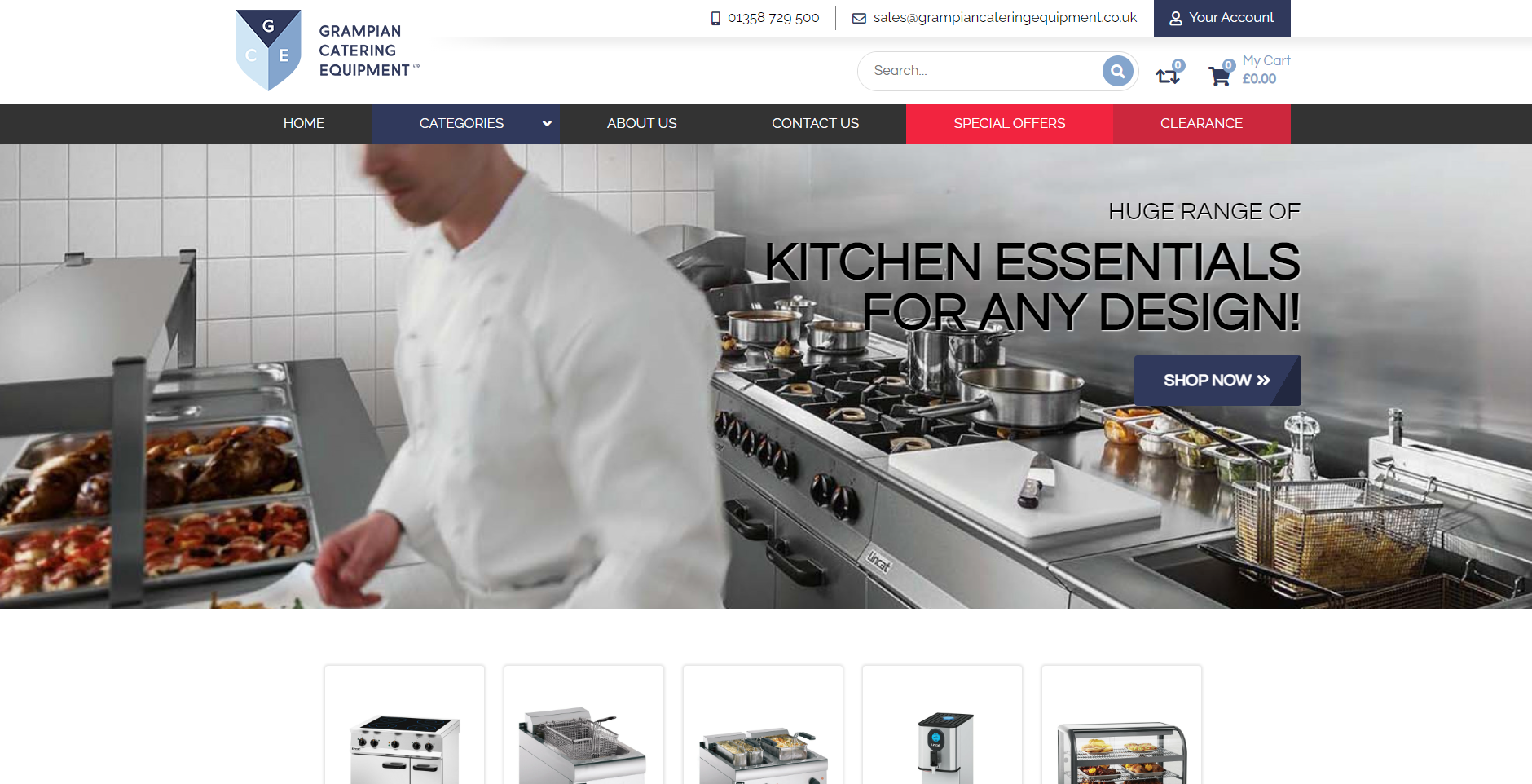 As Grampian's leading distributor of catering equipment, we can supply the largest range of catering equipment, bar equipment, fast food equipment, utensils and bar glasses etc from our large stock holding. Most of our products can be found on display in our showroom. We are at present upgrading our website so you can purchase all your requirements on line.