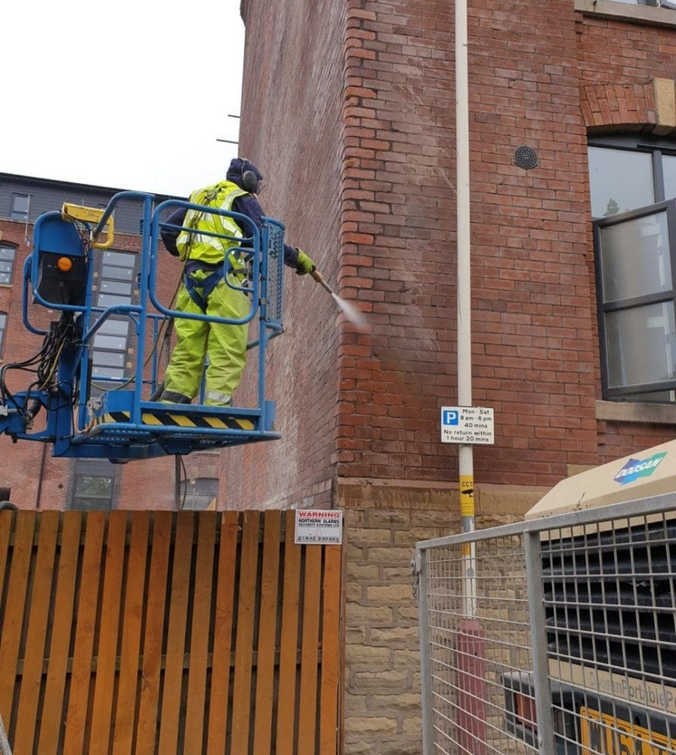 Typically, pressure washing and brick acid are sufficient, though more clients are now opting for superheated steam, which is gentler on mortar. For large amounts of mortar debris or heavily soiled bricks, our sand jet machine provides a cost-effective solution while causing minimal damage to pointing.