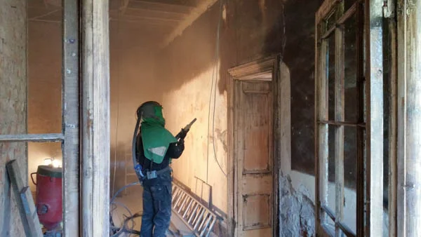 Laser cleaning is now becoming affordable for both domestic and small-scale industrial use. The system uses a scanning laser beam to vaporise surface contaminants. While not the cheapest option, it’s ideal for open-plan properties. It is highly effective at removing smoke damage, though less so for white paint.