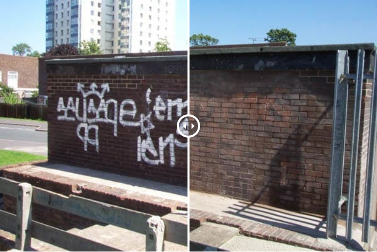 In some cases, chemical stripping provides a fast and effective solution, especially for graffiti on painted surfaces or on materials like galvanised steel that could be damaged by abrasive methods.