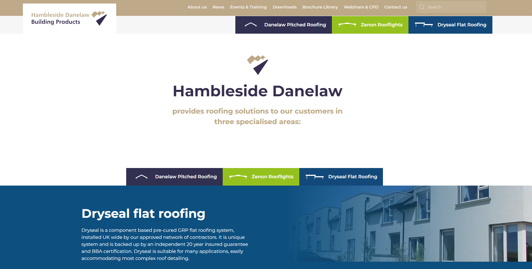 Hambleside Danelaw's GRP products include Dryseal, our component based GRP flat roofing system, low carbon GRP rooflights and wall lights, Dry Fix