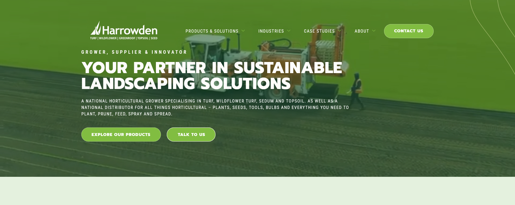 Harrowden began as four separate turf businesses serving distinct parts of the country. Now we’re a national horticultural grower specialising in turf, wildflower turf, sedum and topsoil and we’re a one-stop shop for retail and professional contractors alike. We are also a national distributor for all things horticultural - plants, seeds, tools, bulbs and everything you need to plant, prune, feed, spray and spread. In this sector there is no room to stand still so our culture of innovation means continual improvement, depot development and an ever-expanding product portfolio.