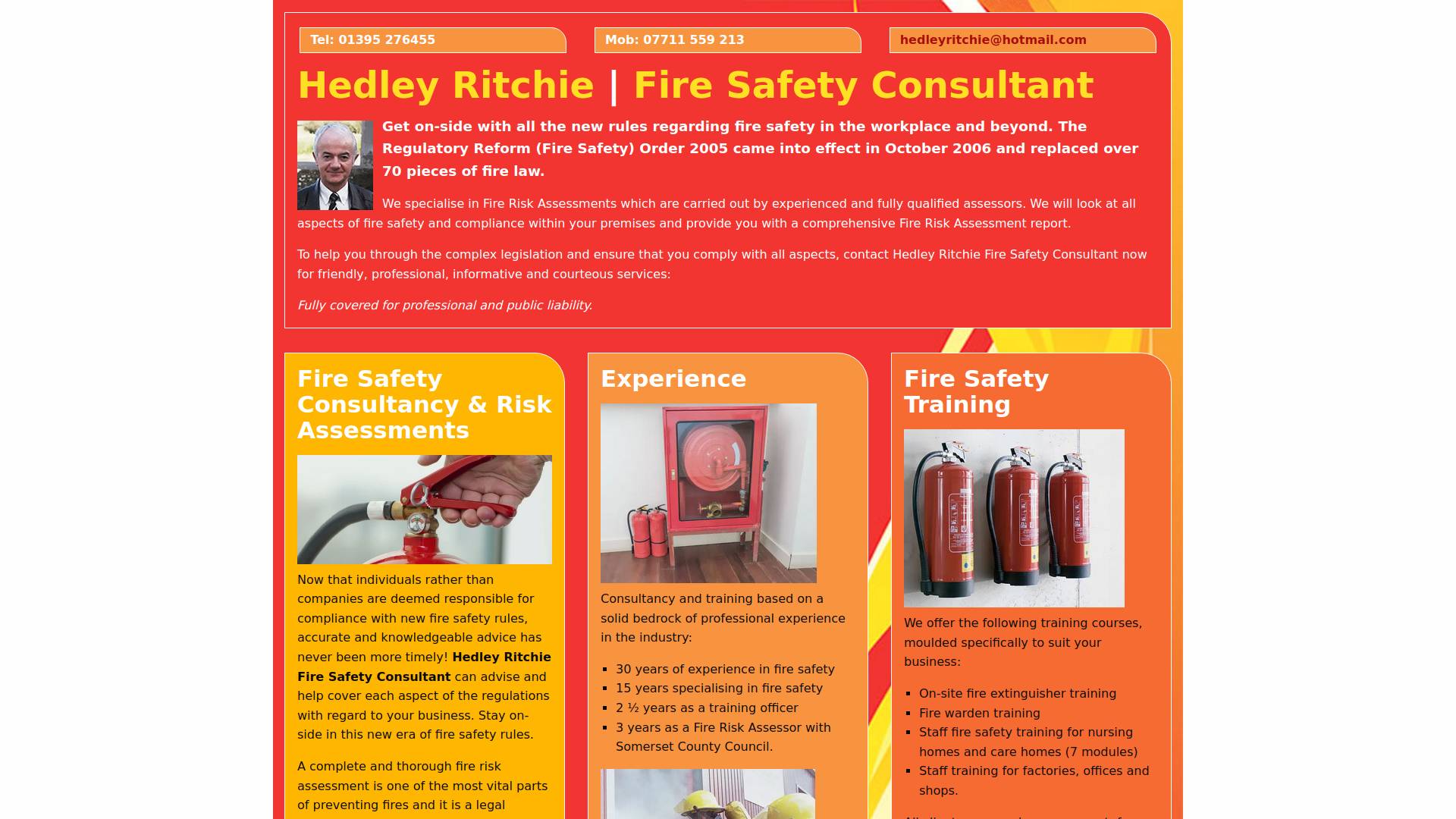 I am Hedley Ritchie, Fire Safety Consultant. 30 years service within the fire service.