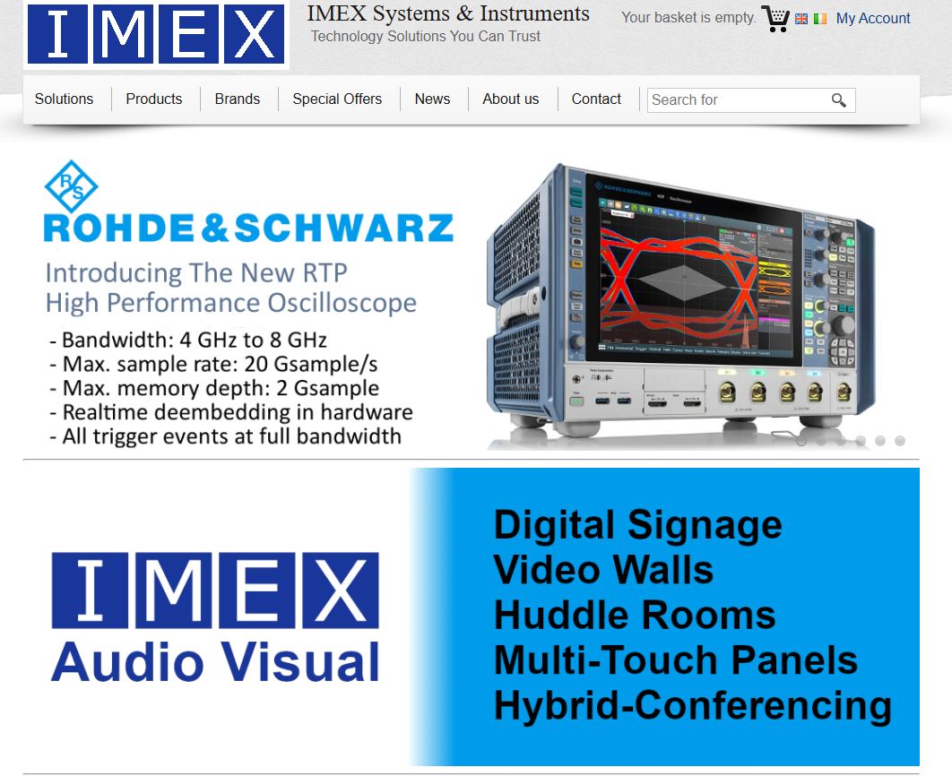 Founded in 1970, IMEX is now a long established and thriving business. We are the Sole distributor of Test and Measurement equipment for Tektronix, Keithley, Rohde and Schwarz, TTI, MOHR and PICO Technology in Ireland. As a very diverse and dynamic company with specialist knowledge in leading edge Electronics as well as a large customer base in Education we now more than ever have fantastic exposure to real world companies developing new technology. This allows us to carry our knowledge through to our Educational customers by enhancing teaching laboratories and classrooms with relevant equipment to ensure that future graduates have access to industry standard equipment and practices.