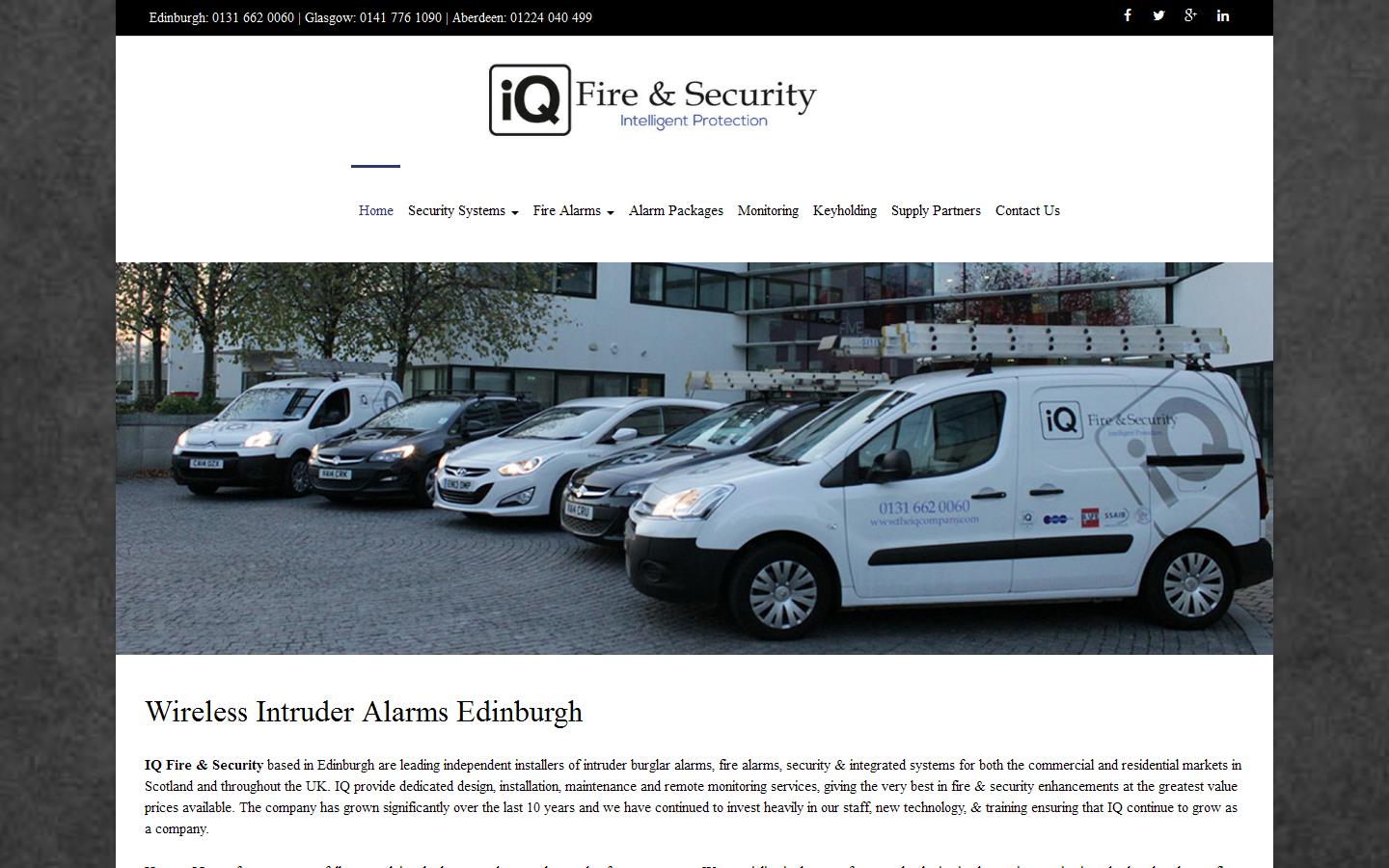 IQ Fire & Security are leading independent installers of intruder alarms, fire alarms, security & integrated systems for both the commercial and residential markets in Scotland and throughout the UK. IQ provide dedicated design, installation, maintenance and remote monitoring services, giving the very best in fire & security enhancements at the greatest value prices available. The company has grown significantly over the last 10 years and we have continued to invest heavily in our staff, new technology, & training ensuring that IQ continue to grow as a company.