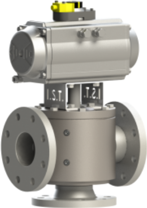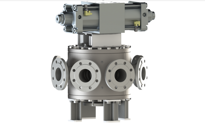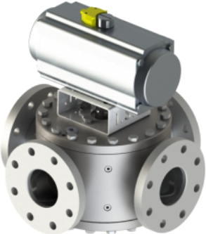 Pressure balanced seal design provides effortless movement of the valve ring, using only a small pneumatic cylinder. There is only minimal pressure drop when the product flow is diverted.