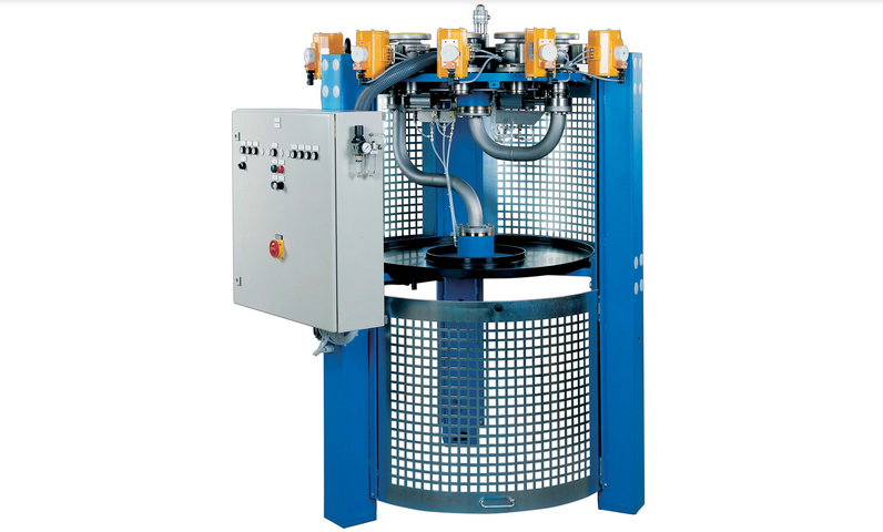 On the fully automatic 2 x 12 rotary manifold, an elbow and an S-pipe rotate on the radius of the I.S.T. sliding couplings. A separate pneumatic motor moves the pipes, the positions of which are monitored by sensors. The control unit co-ordinates all paths of travel. The rotary manifold is protected by a wire mesh guard - or with shatter-proof PMMA type guards on request.