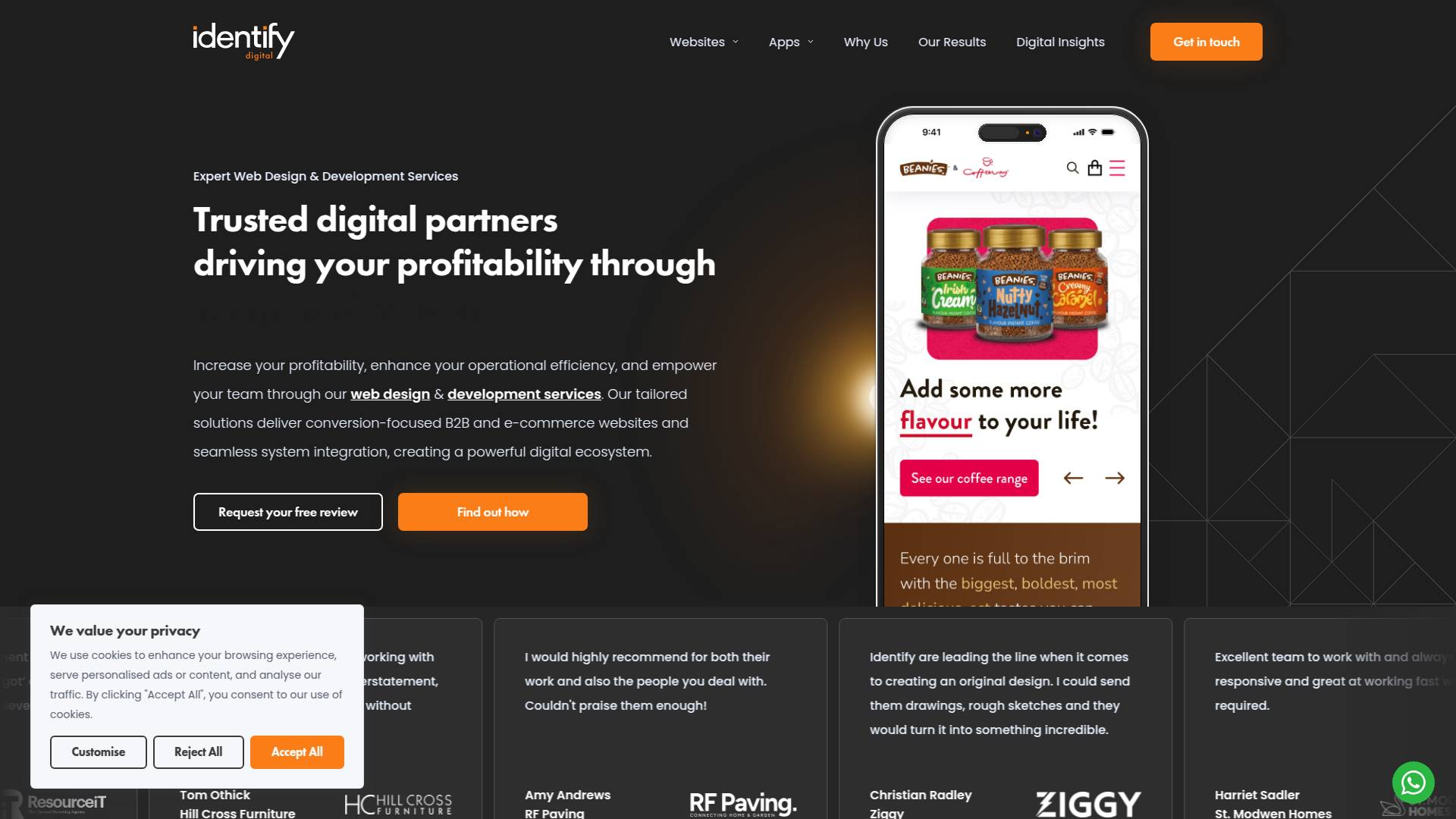 Identify Digital is a trusted web design agency in the UK, creating high-performing websites, e-commerce stores, and custom software for growing businesses. Alongside website development, we offer app development, Shopify and Magento builds, CRO, and ongoing technical support. Our team delivers tailored digital solutions that help brands scale with confidence.