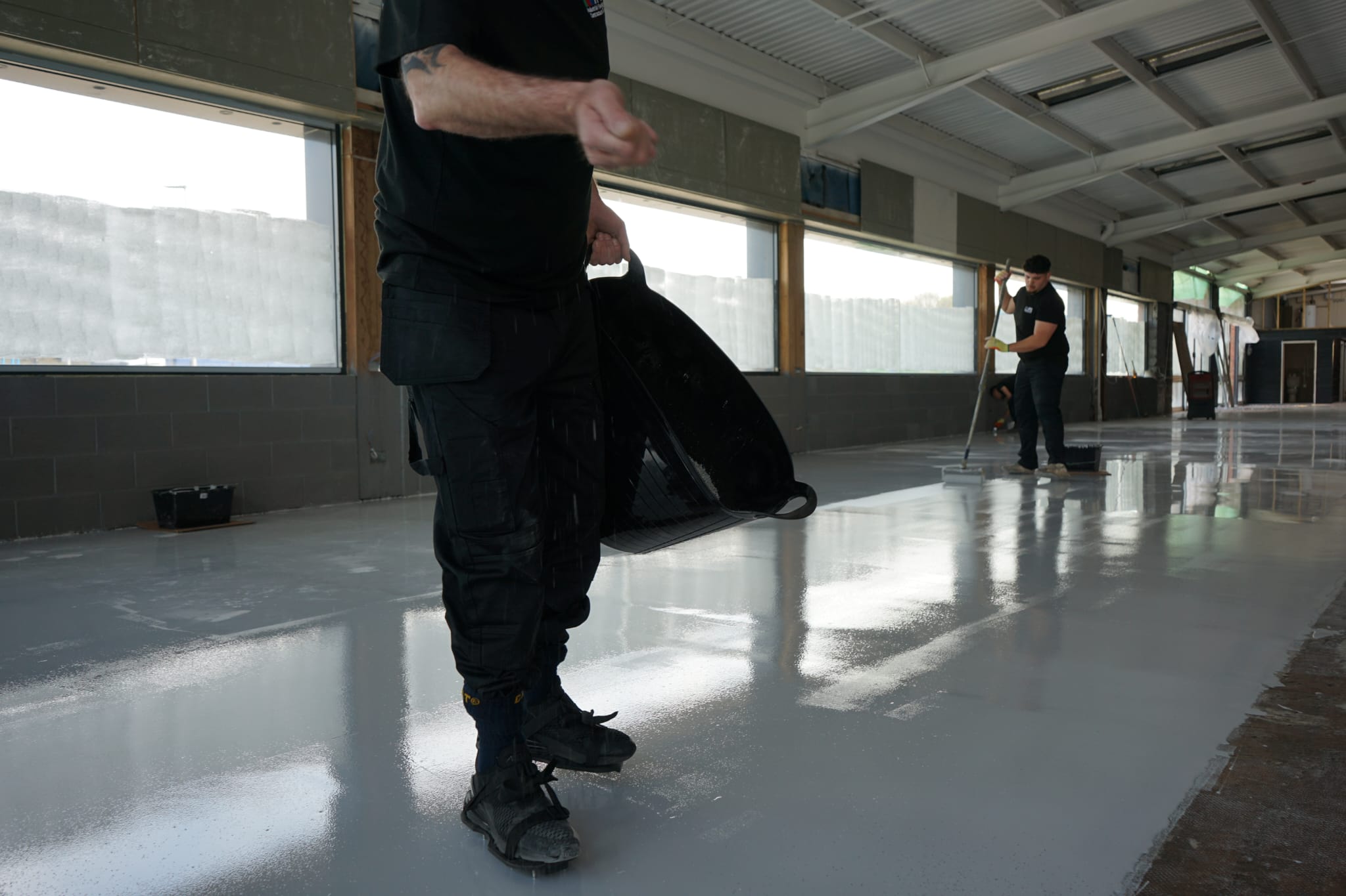 The major benefits over a traditional sand cement screed is that of the speed of installation and the ability to cover large areas quickly and efficiently.