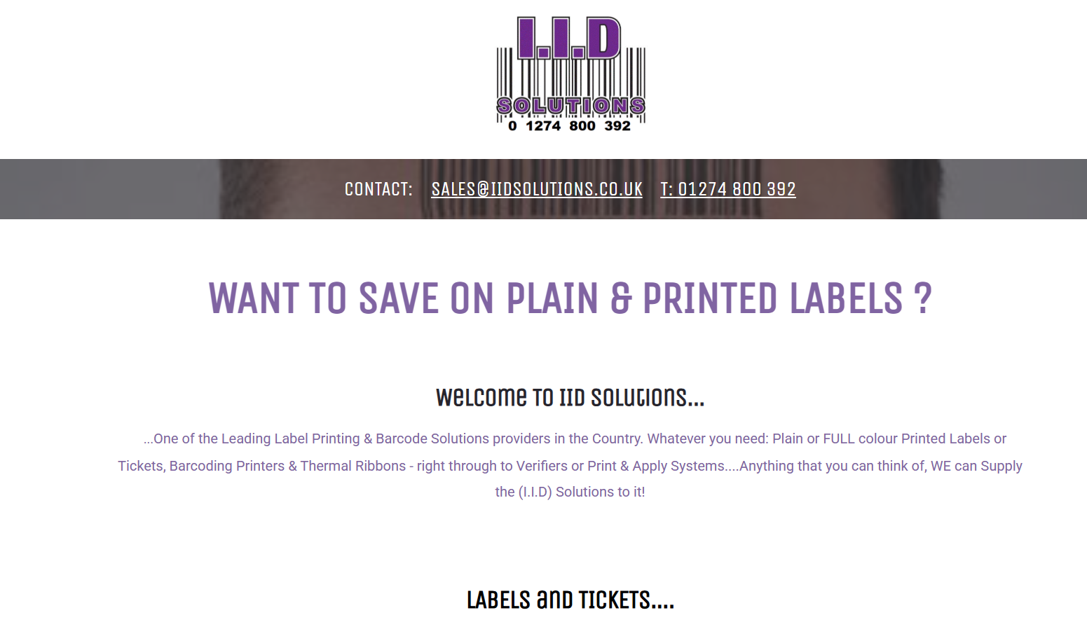 One of the Leading Label Printing & Barcode Solutions providers in the Country. Whatever you need: Plain or FULL colour Printed Labels or Tickets, Barcoding Printers & Thermal Ribbons - right through to Verifiers or Print & Apply Systems....Anything that you can think of, WE can Supply the (I.I.D) Solutions to it!
