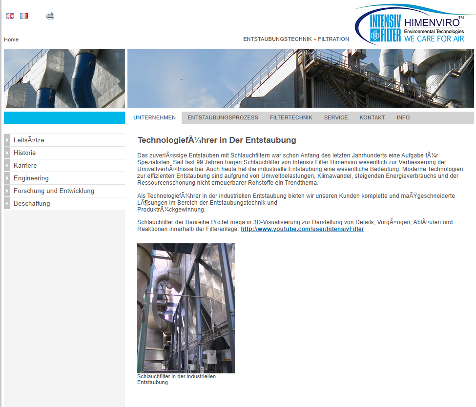Reliable dust removal was a task for specialists even at the beginning of the last century. Bag filters of Intensiv Filter Himenviro contribute to an improved environment for almost 99 years now. Also today the industrial dust removal has a mean significance. Modern technologies for efficient dust removal are a trend subject due to environmental impacts, climate change, rising energy consumption and conservation of natural ressources of renewable raw materials.