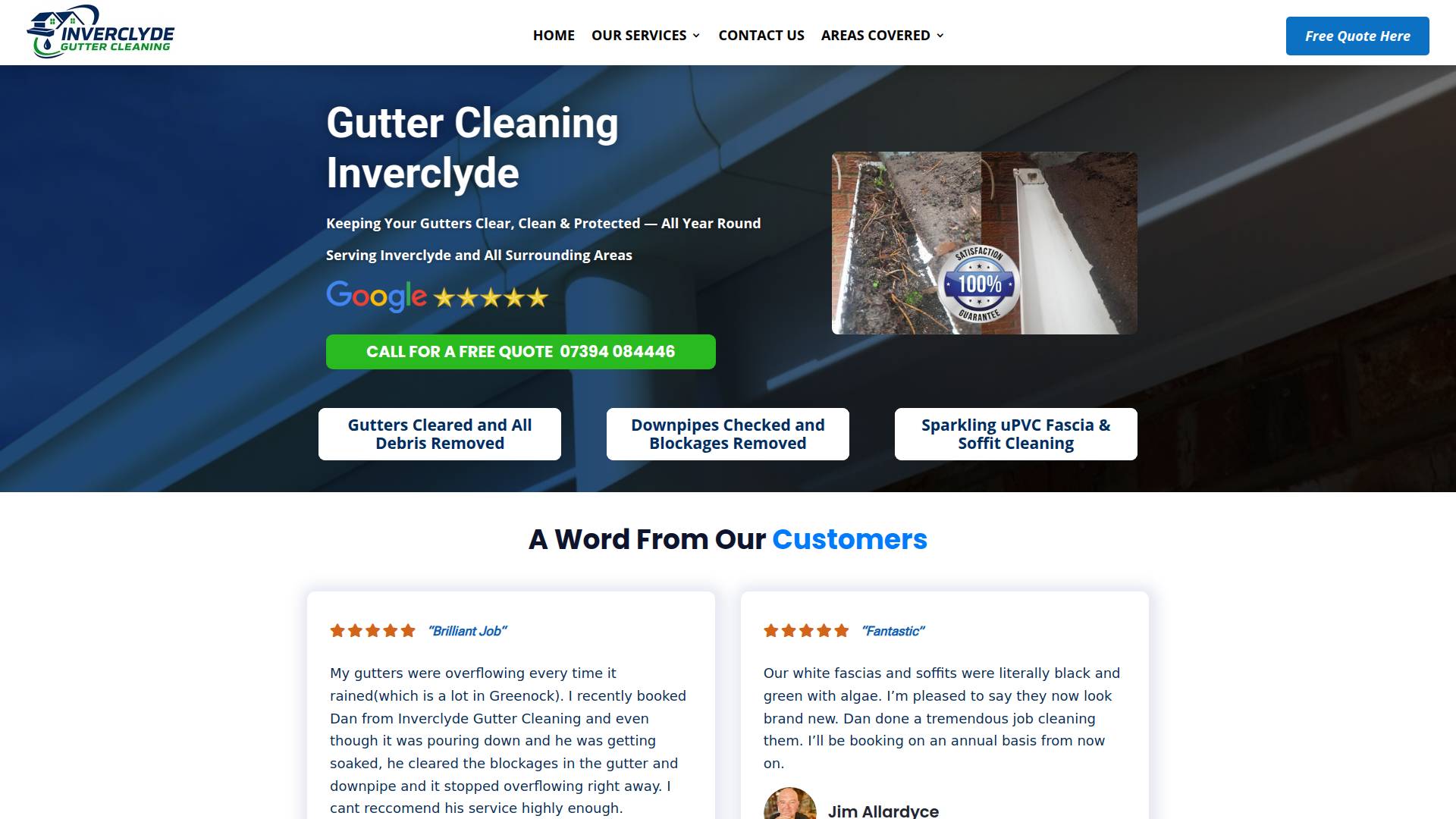 At Inverclyde Gutter Cleaning, I provide professional gutter clearing and fascia & soffit cleaning for homes and businesses throughout Inverclyde — with honest pricing and zero mess left behind.