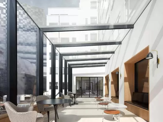If you require an opening element to your frameless glass roof IQ has a range of opening solutions that can be fitted into our structural glass roof designs for either venting, access or bringing the outside in. Sliding rooflights are also an alternative method to allow ventilation into the building while maintaining a minimal frame appearance.