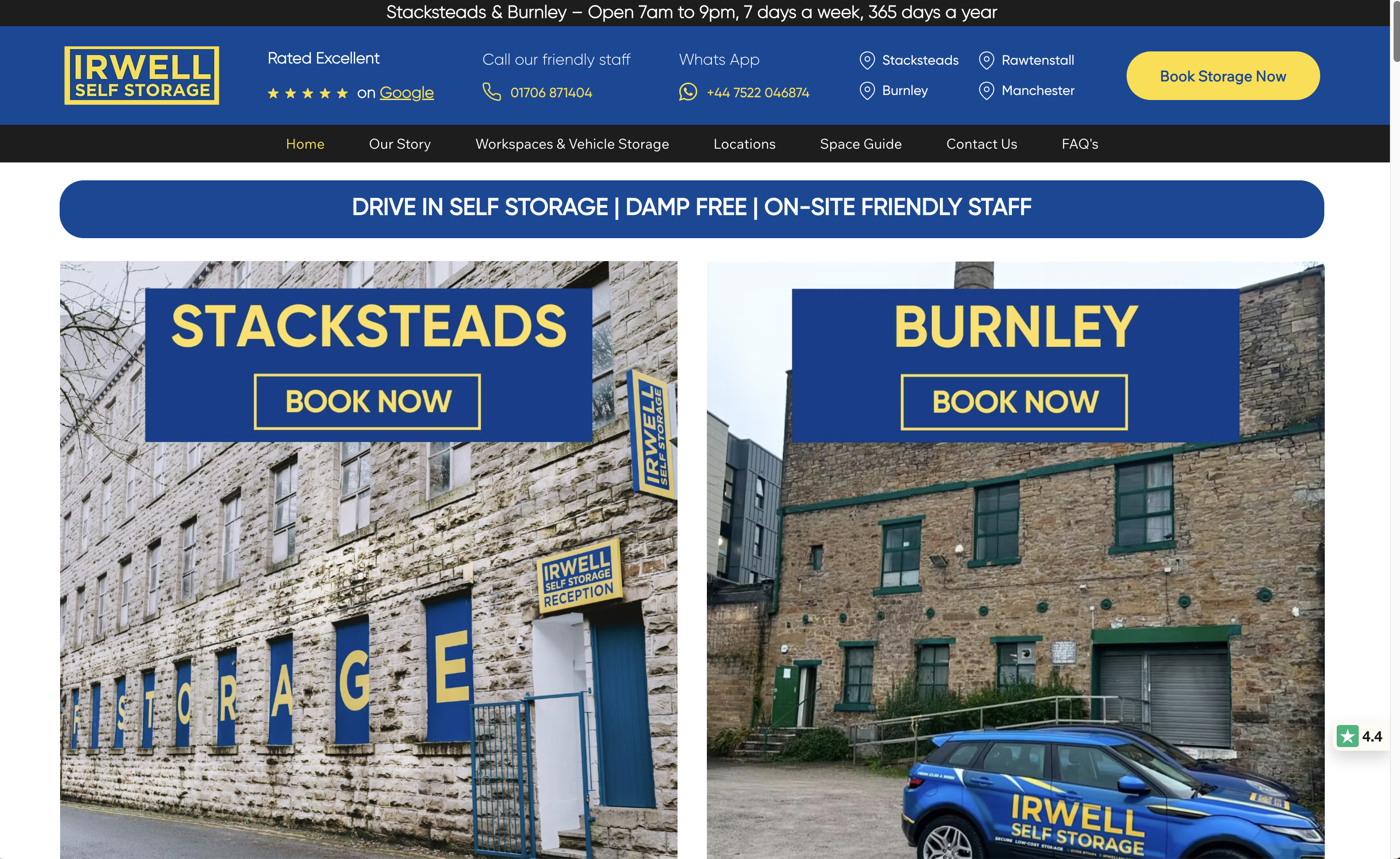 Secure self storage in Stacksteads, serving Rossendale, Rawtenstall, Bacup, Cowpe, Weir, Haslingden, Ramsbottom, Todmorden, Burnley, Bury, Lancashire and Greater Manchester