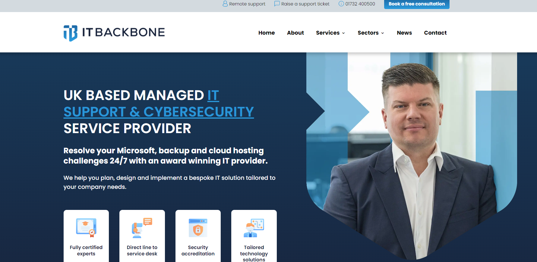 IT Backbone Limited is a well-known and respected brand in the managed IT support services industry. We offer a wide range of outsourcing services, including cloud hosting, cyber security measures, and 24 7 helpdesk to a huge array of companies. IT Backbone Limited has everything you need, whether it’s outsourced IT support to prevent data hazards or recommendations tailored to the specific needs of your business.