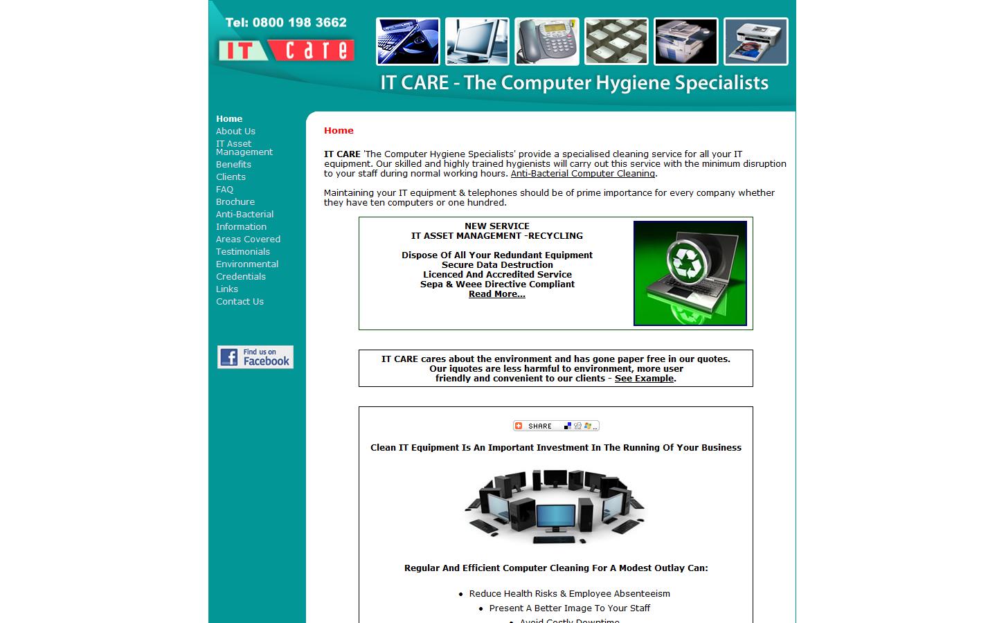 IT Care provide something vital that a lot of offices forget about... computer hygiene. We can help improve the cleanliness of your computers with anti bacterial computer cleaning services allowing better employee health, better hygiene standards and generally a more healthy and reliable workplace.