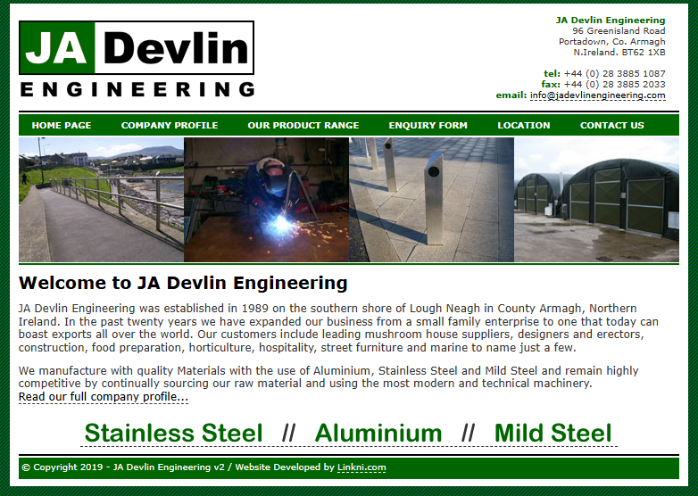 JA Devlin Engineering was established in 1989 on the southern shore of Lough Neagh in County Armagh, Northern Ireland. In the past twenty years we have expanded our business from a small family enterprise to one that today can boast exports all over the world. Our customers include leading mushroom house suppliers, designers and erectors, construction, food preparation, horticulture, hospitality, street furniture and marine to name just a few.