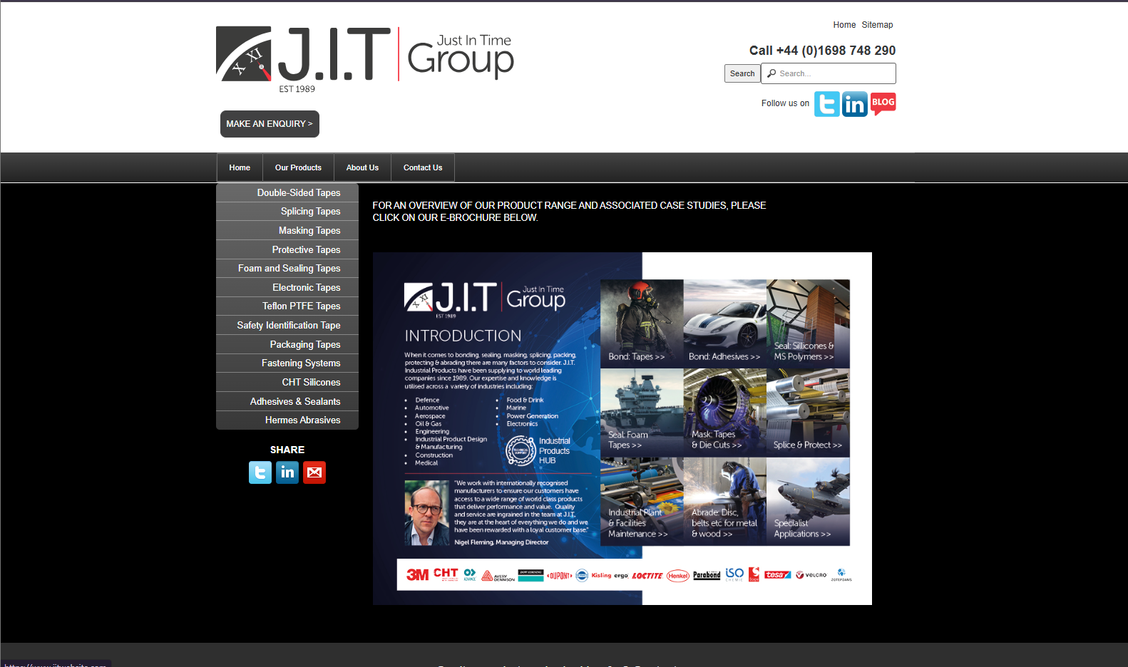 J.I.T was originally founded in 1989 as Industrial Tape Deivision. We have built up a strong reputation in providing excellent quality Tapes, Adhesives, Abrasives, Cleaning Products & Innovative Design Solutions.