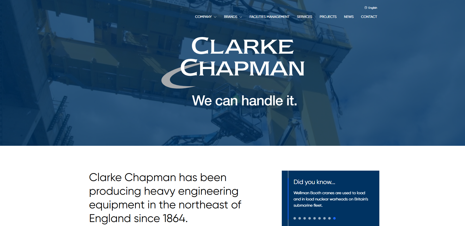 During the 1990’s, under the ownership of Rolls-Royce, Clarke Chapman incorporated the companies Wellman Booth, Stothert & Pitt and Cowans Sheldon to become Rolls-Royce Materials Handling.