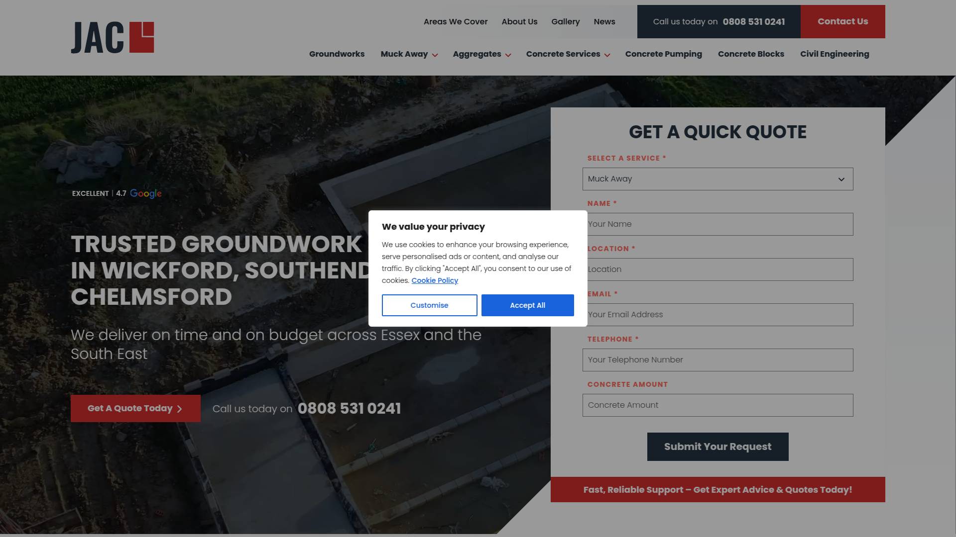 JAC Groundwork & Civil Engineering is a reputable Essex‑ and South East England‑based civil engineering and demolition contractor offering groundwork, plant hire, muck‑away and aggregate haulage services to domestic and commercial clients, consistently delivering projects on time and on budget