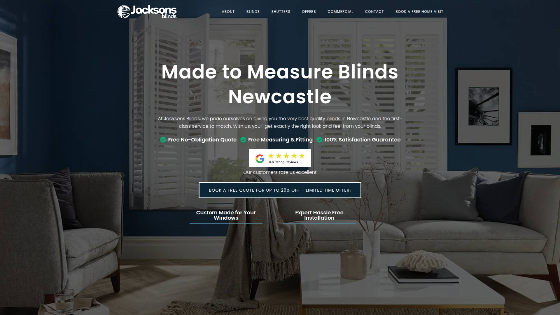 Jacksons Blinds is a trusted, family-run blinds and shutters company based in Newcastle and Gateshead, specialising in made-to-measure blinds, shutters and professional installation with free measuring, fitting and satisfaction guarantee. They offer stylish custom window treatments for homes and businesses across the North East.