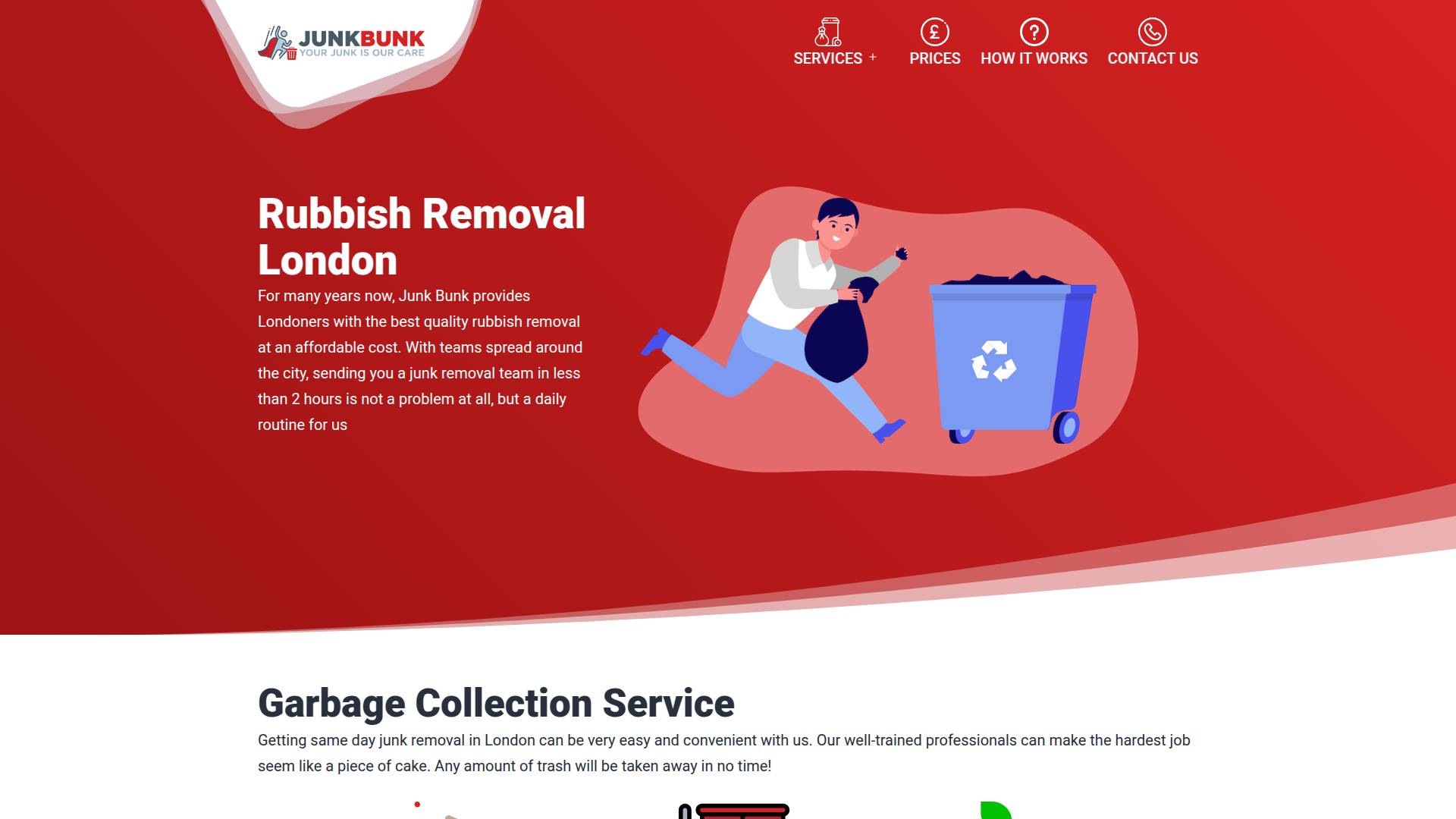 Junk Bunk is a professional, licensed rubbish removal company based in London, offering comprehensive waste clearance services across the city. We are specializes in same-day and next-day collections for both residential and commercial clients. Our services include house, office, garage, shed, garden, and furniture clearance, as well as builders' waste disposal. Junk Bunk is known for its upfront pricing, 24/7 availability, and eco-friendly practices, ensuring that over 80% of collected waste is recycled. With a fleet of well-equipped vans and a team of trained professionals, we provide efficient and reliable service, often within two hours of booking. Our commitment to customer satisfaction is reflected in positive reviews on platforms like Trustpilot and Google
