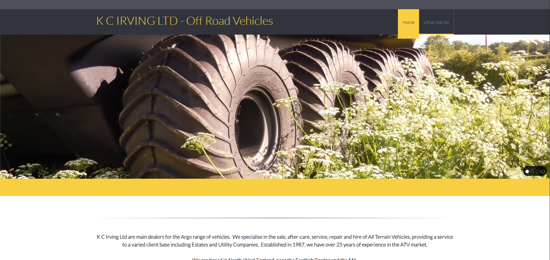 K C Irving Ltd are main dealers for the Argo range of vehicles. We specialise in the sale, after-care, service, repair and hire of All Terrain Vehicles, providing a service to a varied client base including Estates and Utility Companies. Established in 1987, we have over 25 years of experience in the ATV market.