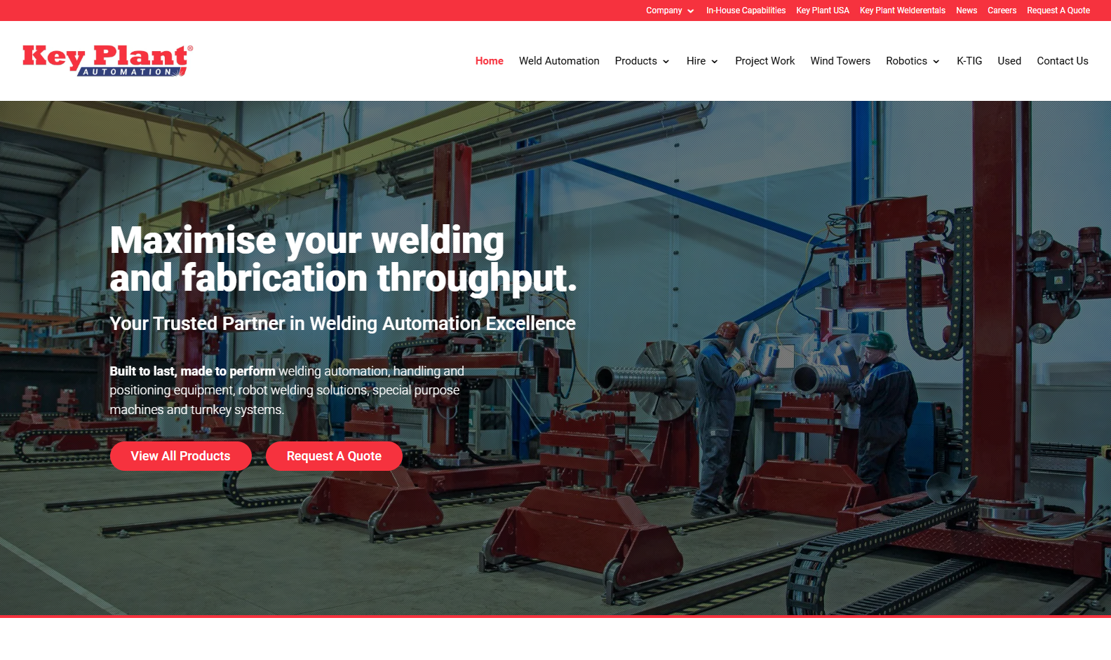 Key Plant design, manufacture and supply a catalogue of innovative and accomplished welding automation products, along with exclusive engineering solutions for customers all over the world. With our comprehensive in-house capabilities, advanced design technology and manufacturing expertise − we have total control of production, enabling Key Plant the flexibility and ability to meet our customer’s requirements and demands.