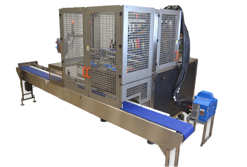 The KCCR Carton Closer by Keymac is a fully-automatic continuous motion right angle three flap carton closer that operates at speeds up to 120 cartons per minute.