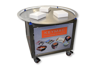 The Keymac KRT Rotary Table is a compact addition to our customers’ packing lines. Its one metre table and variable speed drive makes it a low cost and economical machine to receive cartoned or sleeved product for manual packing into outers or cases.