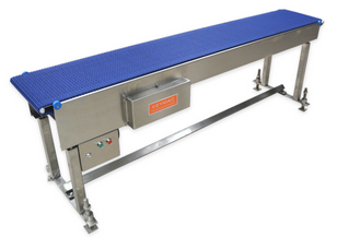 Keymac manufactures a range of bespoke variable speed conveyors with a choice of either Intralox, rubber flat belt or delrin slat chain.