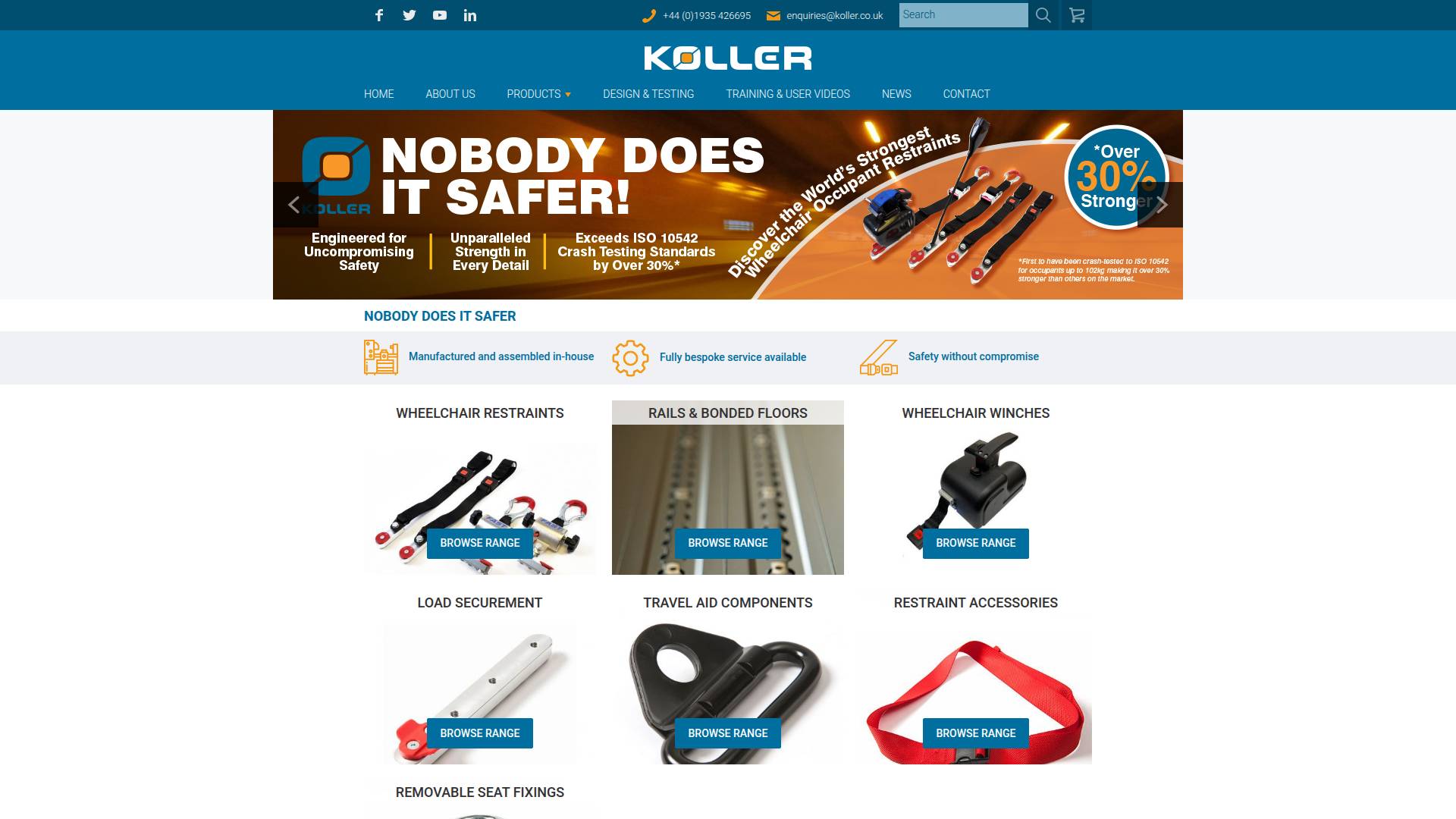 A leading company in this specialised market, we are recognised for our attention to safety, quality and customer satisfaction and are fully ISO 9001 compliant. Before being placed on the market, our products are tested to the latest stringent safety standards. Often this is in conjunction with major seat and wheelchair manufacturers and vehicle converters. This testing programme provides our customers and potential customers with the assurance that they are purchasing products of the highest standard.