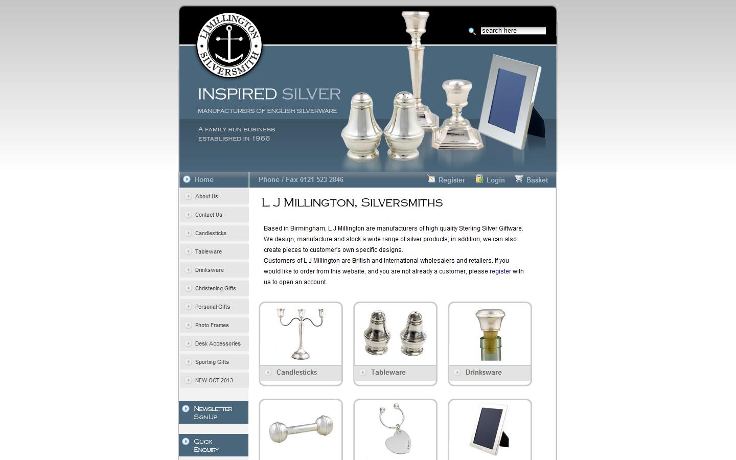 L J Millington are manufacturers of high quality Sterling Silver Giftware. A family owned company that designs and manufactures a wide range of silver products including photoframes, christening gifts, pens, desk accessories, crystal decanters, etc.
