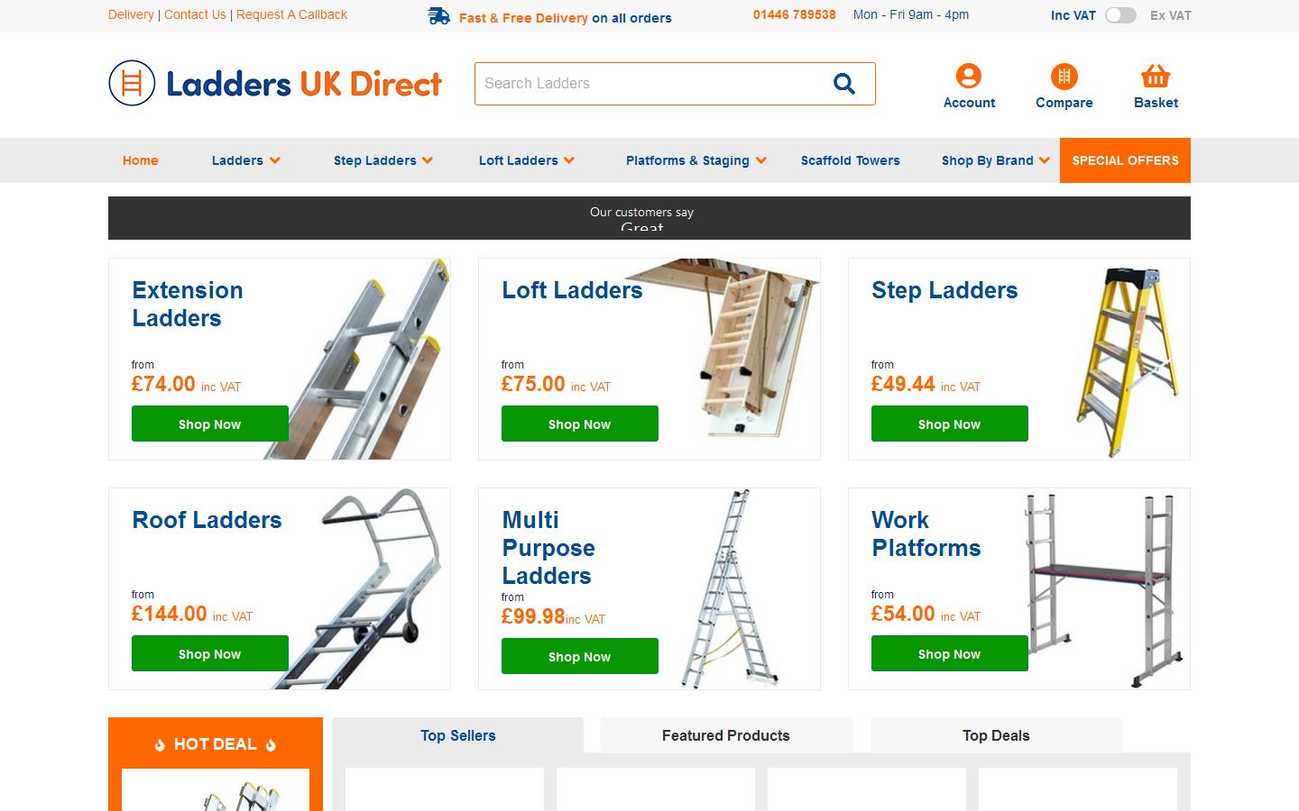 Ladders UK Direct is an online store selling step ladders, extension ladders, loft ladders, roof ladders and work platforms. Product available for trade, industrial and domestic use. Free delivery on all orders.