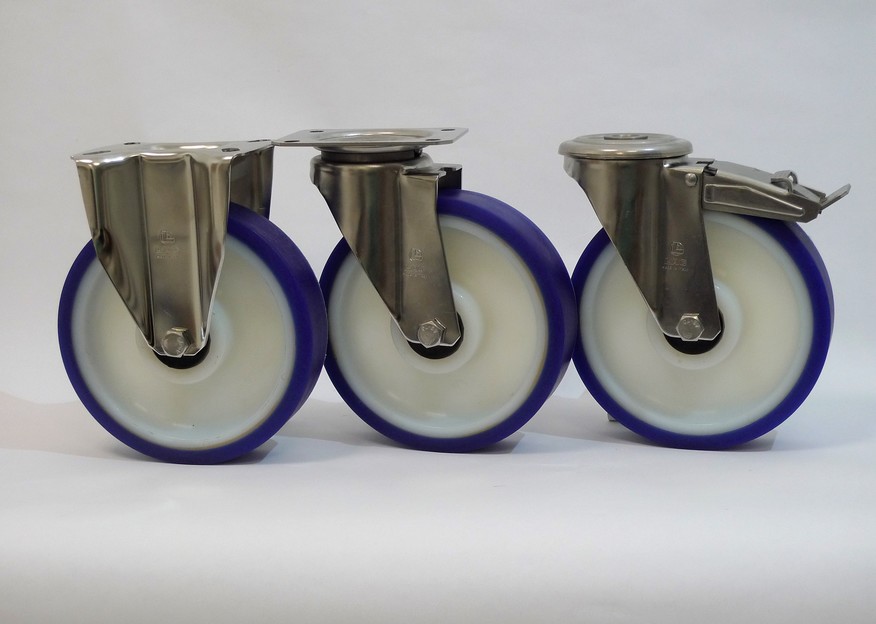 Wide range of stainless steel castors with swivel or fixed forks and wheels of various types to suite all applications. Brake available on swivel castors for most sizes. Please visit website for full selection