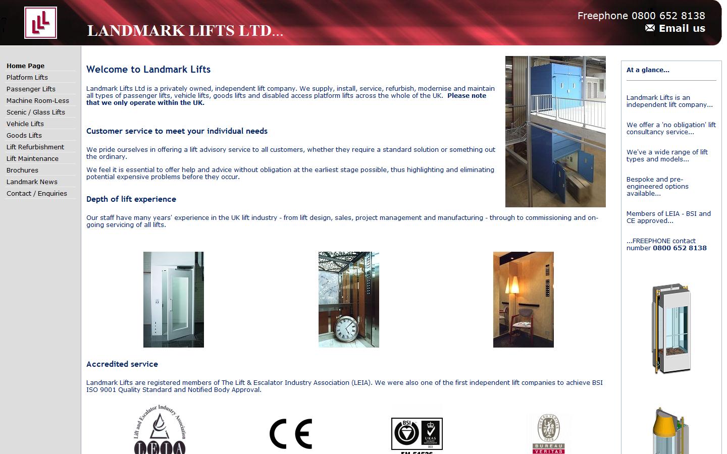 Landmark Lifts Ltd supply, install, service, maintain, repair and modernise all types of lifts from passenger, vehicle, goods and platform lifts to scenic and bespoke lifts and mobility equipment within the UK.