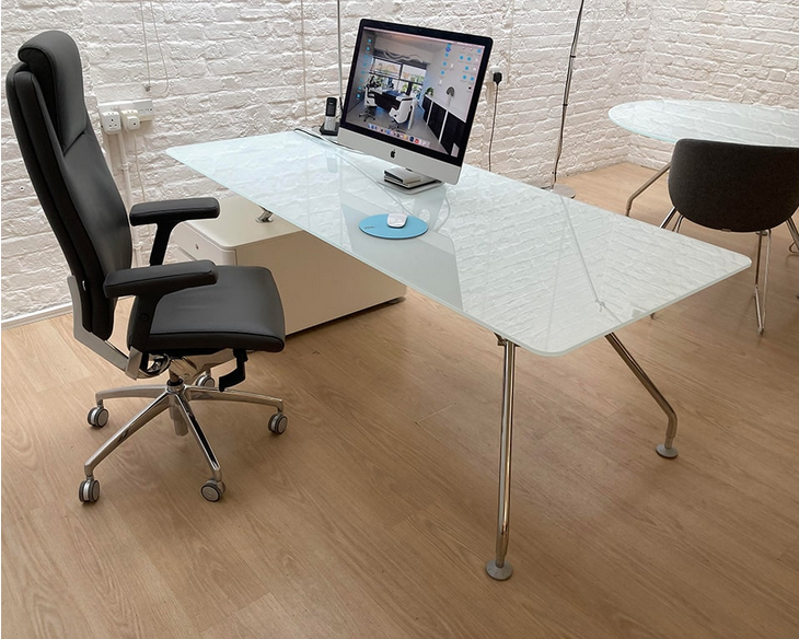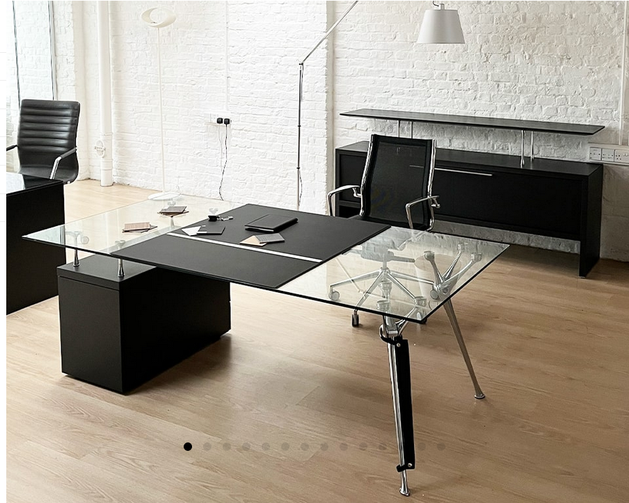 These modern executive office desks have stylish 12mm tempered glass tops and die cast aluminium legs.