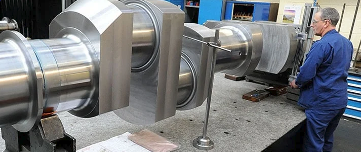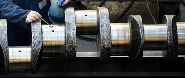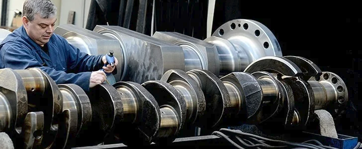 On receiving a used crankshaft, an initial inspection is carried out. This includes non-destructive tests such as ultrasonic, magnetic particle and liquid penetrant. A dimensional inspection is carried out where diameters, straightness, half stroke and angularities are checked. A hardness survey will also be conducted. All this will be analysed to determine a salvage procedure. Chrome plating or metal spray build ups are available via our approved sub-contractors if required.