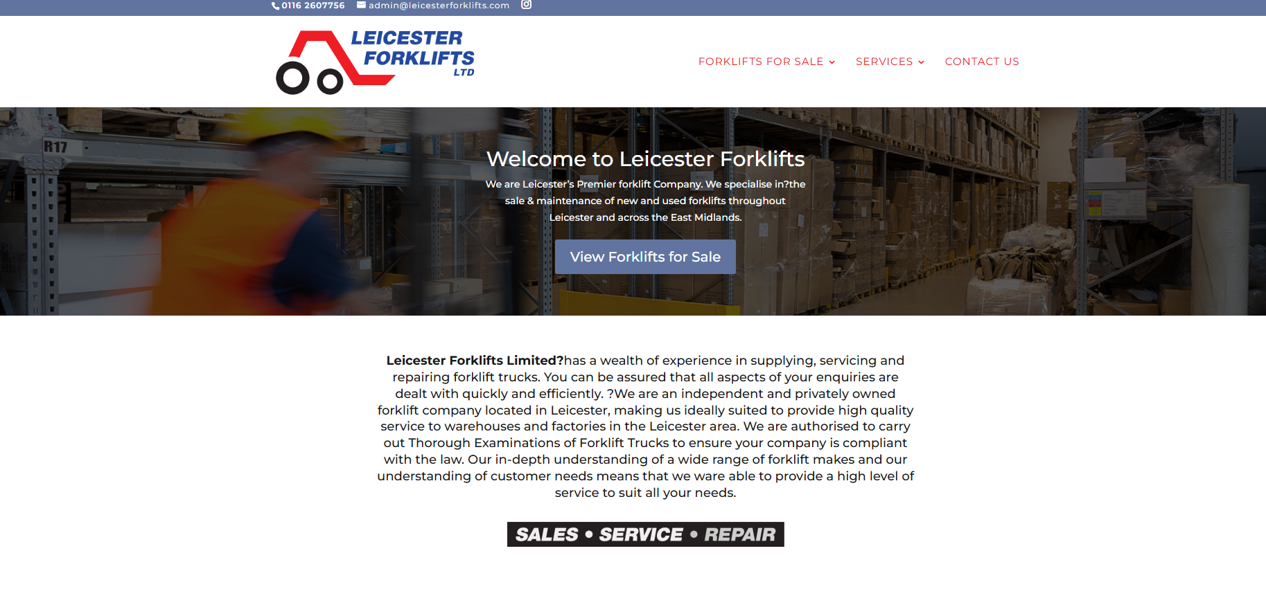 Leicester Forklifts Limited?has a wealth of experience in supplying, servicing and repairing forklift trucks. You can be assured that all aspects of your enquiries are dealt with quickly and efficiently. ?We are an independent and privately owned forklift company located in Leicester, making us ideally suited to provide high quality service to warehouses and factories in the Leicester area. We are authorised to carry out Thorough Examinations of Forklift Trucks to ensure your company is compliant with the law. Our in-depth understanding of a wide range of forklift makes and our understanding of customer needs means that we ware able to provide a high level of service to suit all your needs.