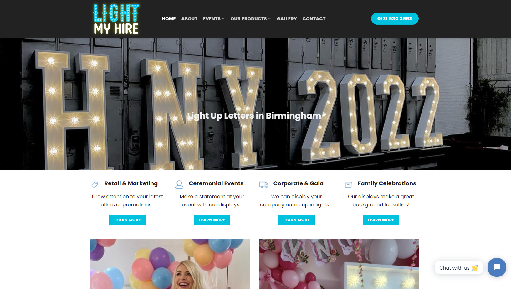 If you’re looking for high quality event extras to create a celebration that people will be talking about for weeks − then Light My Hire have got you. We’re based in Birmingham, but can cater for your event in any of the surrounding areas and beyond. With over 15 year’s industry experience we are proud to be one of Midland’s largest suppliers of specialist event displays for hire.