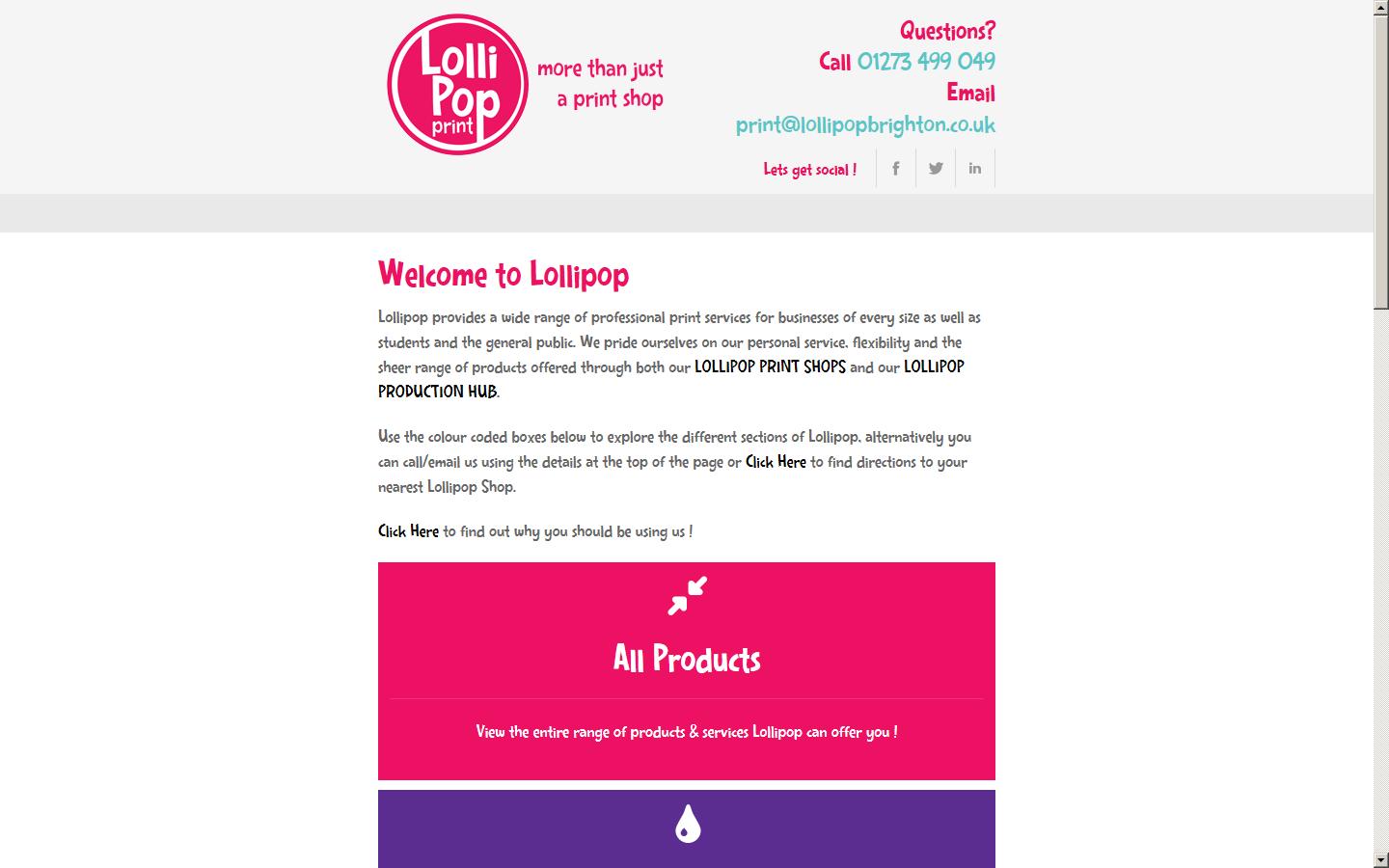 Lollipop provides design and print services to businesses of every size. In addition to a collection and delivery service throughout Brighton, Hove and the surrounding area a drop-in copying, printing and scanning service is available Monday to Friday for students and personal callers.