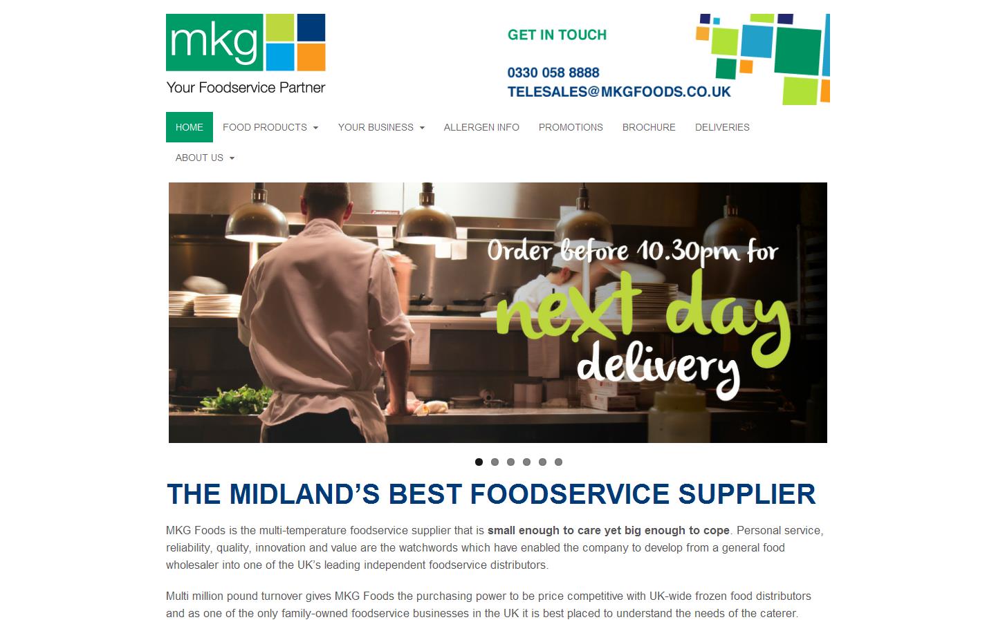 MKG Foods is the multi-temperature foodservice supplier that is small enough to care yet big enough to cope. Personal service, reliability, quality, innovation and value are the watchwords which have enabled the company to develop from a general food wholesaler into one of the UK’s leading independent foodservice distributors.